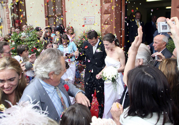 Orange flowers in the church of Santi Giovanni e Paolo al Celio for Michela Quattrociocche, 24, and Alberto Aquilani, 28, Liverpool midfielder, on loan to AC Milan last season. The actress, who on April 18 last year gave birth to Aurora, opted for a long white dress, specially created for her by Giorgio Armani.