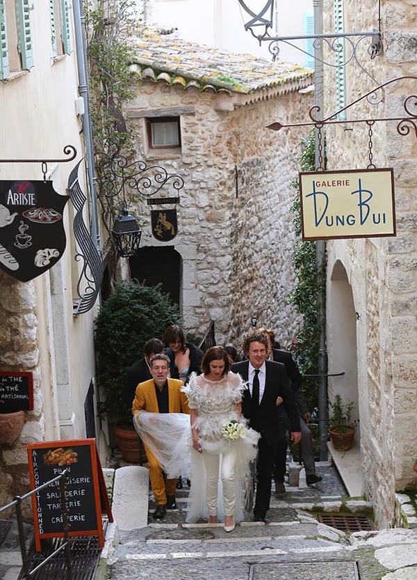 Anna Mouglalis married Vincent Rae in a secret wedding in a small village in the south of France. Following rumors that the couple are expecting a baby, They exchanged their vows in an intimate morning ceremony before close friends & family members. The bride looks happy, radiant, elegant, and modern... Being Karl Lagerfeld's muse, it was oh so natural to wear an Haute Couture Chanel two piece 'dress'.