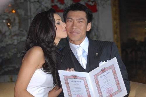 Thailand's golden couple, tennis star Paradorn Srichaphan and Toronto-raised Miss Universe 2005 Natalie Glebova, tied the knot surrounded by honour guards in Bangkok on Thursday. After the romantic private ceremony - which contained elements of a traditional Thai wedding - the bride and groom enjoyed their first dance as man and wife to the strains of fellow Canadian Bryan Adams' Everything I Do, I Do It For You.